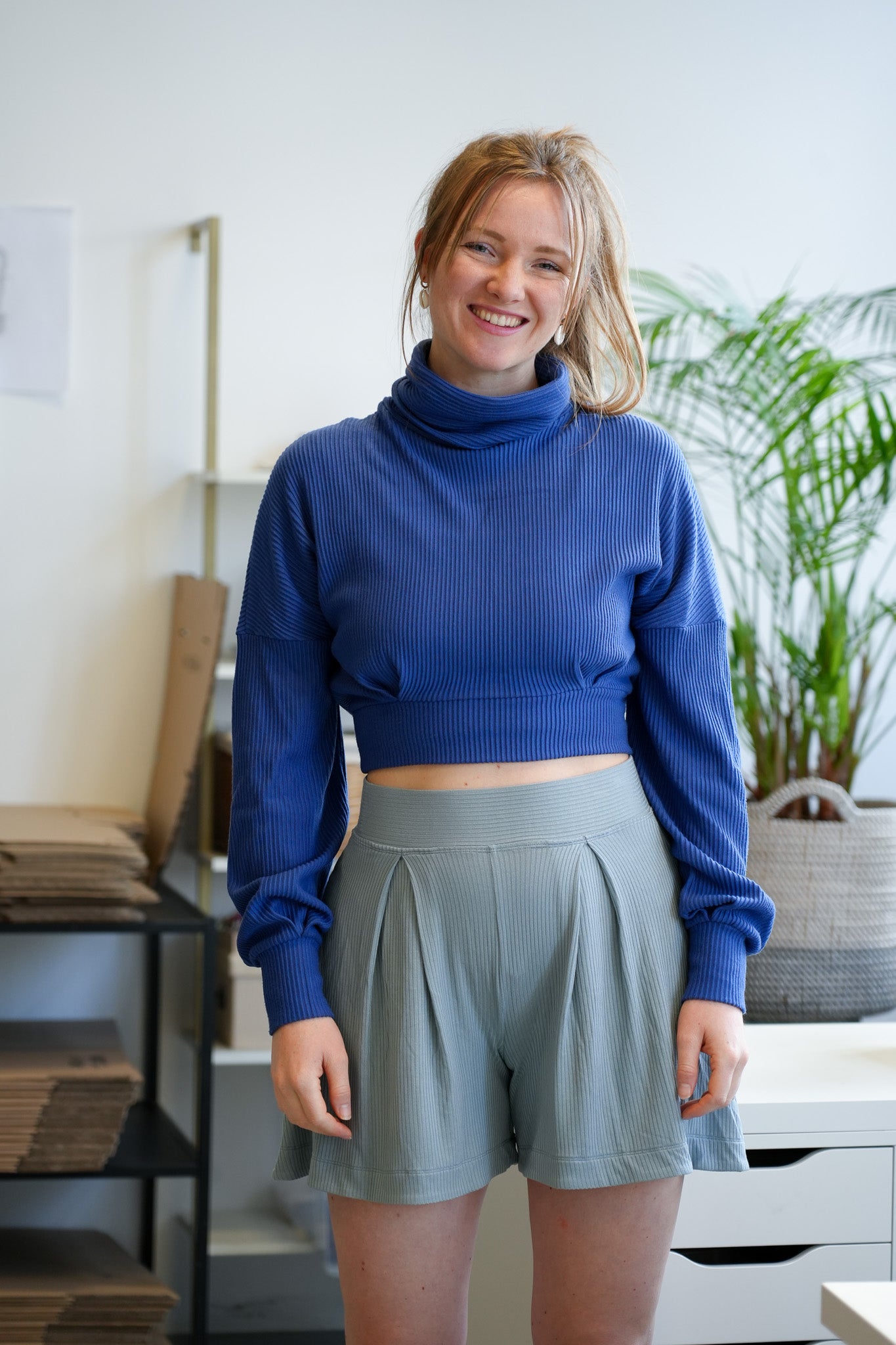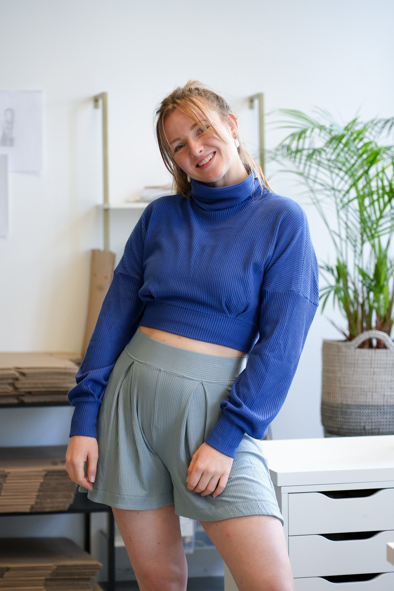 Ein Hauch von Tiefblau – elegant wie der Abendhimmel und so leicht wie eine Sommerbrise. Die Farrah Flower Shorts in sky bringen Schwung in deinen Alltag und Stil in deine Garderobe. Der fließende Stoff aus Tencel schmiegt sich sanft an deine Haut und fühlt sich angenehm kühl an – ideal für warme Tage. Der hohe, elastische Bund sitzt weich in der Taille, während im Vorderteil zarte Falten deine Figur umspielen. Clever gesetzte Abnäher im Rückteil sorgen für eine perfekte Passform – ganz ohne Kompromisse bei der Bewegungsfreiheit. Diese Shorts passen sich deinem Stil mühelos an. Nachhaltig produziert in Deutschland, stilvoll im Ausdruck, komfortabel im Alltag: Ein Kleidungsstück, das sich nach Freiheit anfühlt – und danach aussieht.